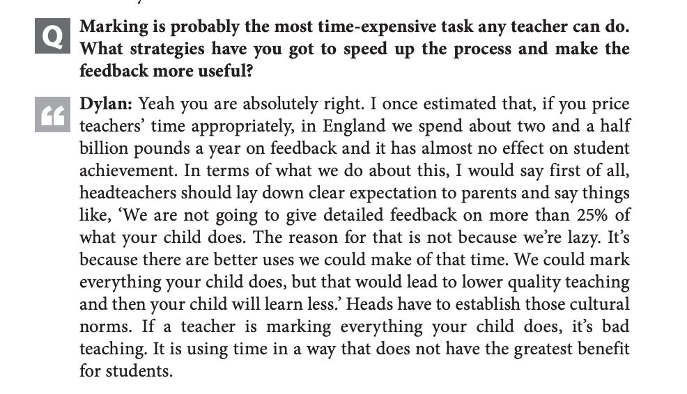ruffled more than a few feathers by claiming it was largely a waste of time. Assessment overlord Dylan Wiliam once argued to me (quite convincingly it has to be said) that marking is the most expensive public relations exercise in history: