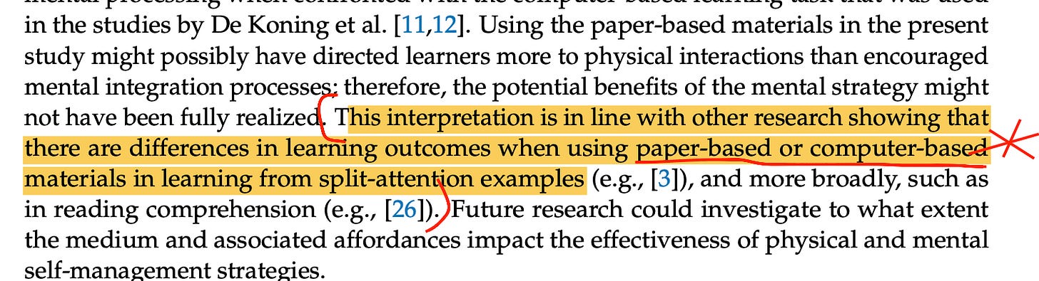 Interestingly, the authors suggest that whether students are working on paper or a screen can actually change how well they learn from split-attention materials, which is something we often overlook.