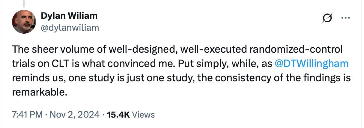 What do teachers need to know? This isn’t a classroom-facing study, but it’s reassuring for anyone using CLT-informed strategies. The paper argues that CLT, unlike some of educational psychology, is actually based on experimental evidence not vague correlations